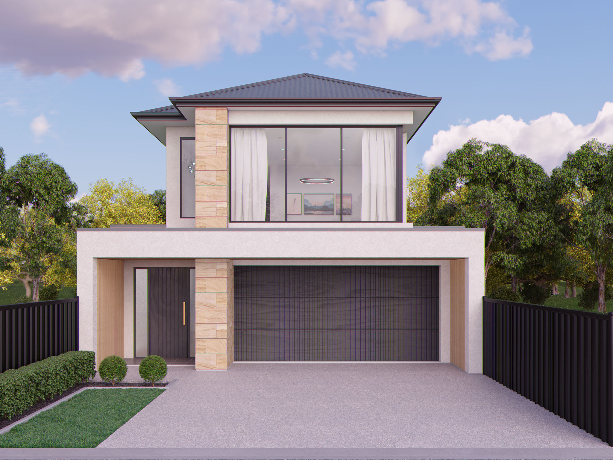 - Inclusive of below: • Stone Double Height Pier to Entry Façade • Timber underside to Portico • Increased Upper Storey Windows • Knotwood® Garage Door Panels